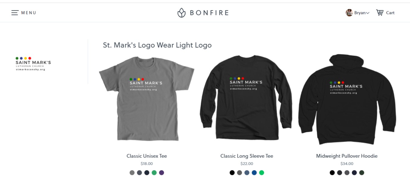 Visit our Bonfire shop to order St. Mark's logo wear - including our famous "I worship in Conshy" shirts. Most of our products are print on demand and when you order from Bonfire a small portion of the sale comes back to St. Mark's as a small fundriaser. Various specialty biblical verse shirts will be created and added from time to time, so come back and check out the store often!